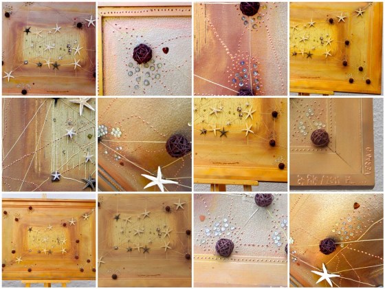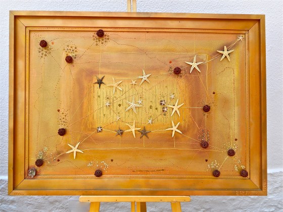 Me gusta tu cuadro: ese color cálido, las estrellas de mar, la sensación, si lo miras un poco más atrás… de poder ser incluso estrellas y planetas, el firmamento, una vida, mil sensaciones.