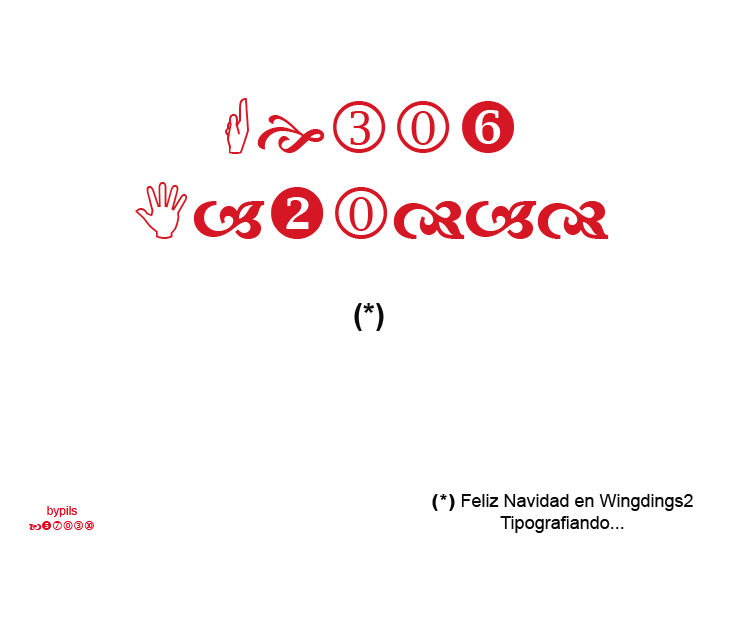 Ya metida de pleno en mis mensajes navideños del 2011, se me ocurrió uno en clave. Aunque lo único que hice fue sustituir la tipografía por la Wingdings2 …pero queda …misterioso. ; – )