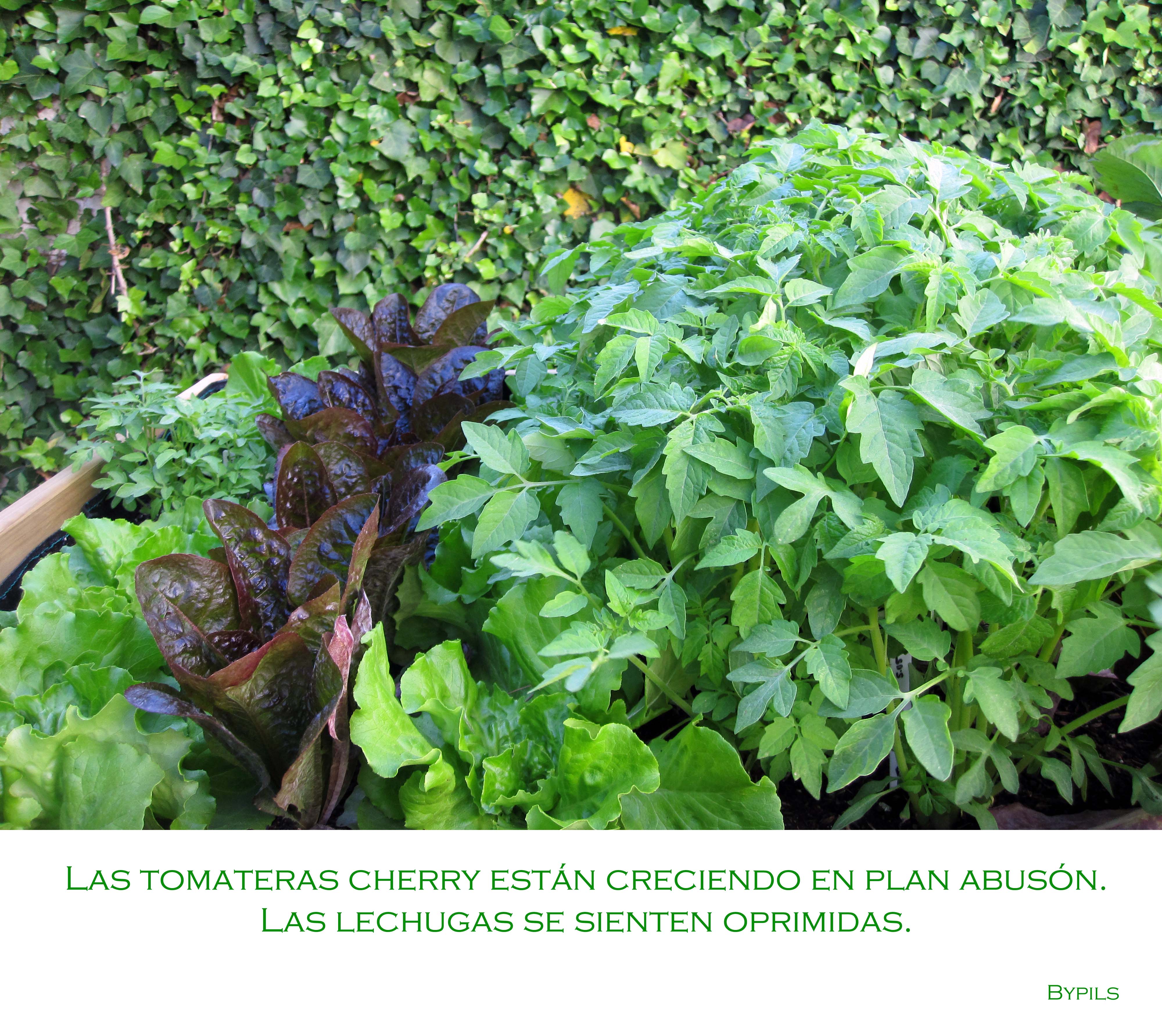 Aquí estamos. En un huerto urbano. La semana pasada, presenciamos el suicidio de una lechuga. Nuestra dueña y cuidadora, mientras canturreaba, regó demasiado a la pobre Pepita que era más pequeña que el resto … Le gritamos que nadara pero ella se dejó vencer . Al día siguiente, sus hojas marchitas sirvieron de abono para el resto. Siempre la recordaremos…