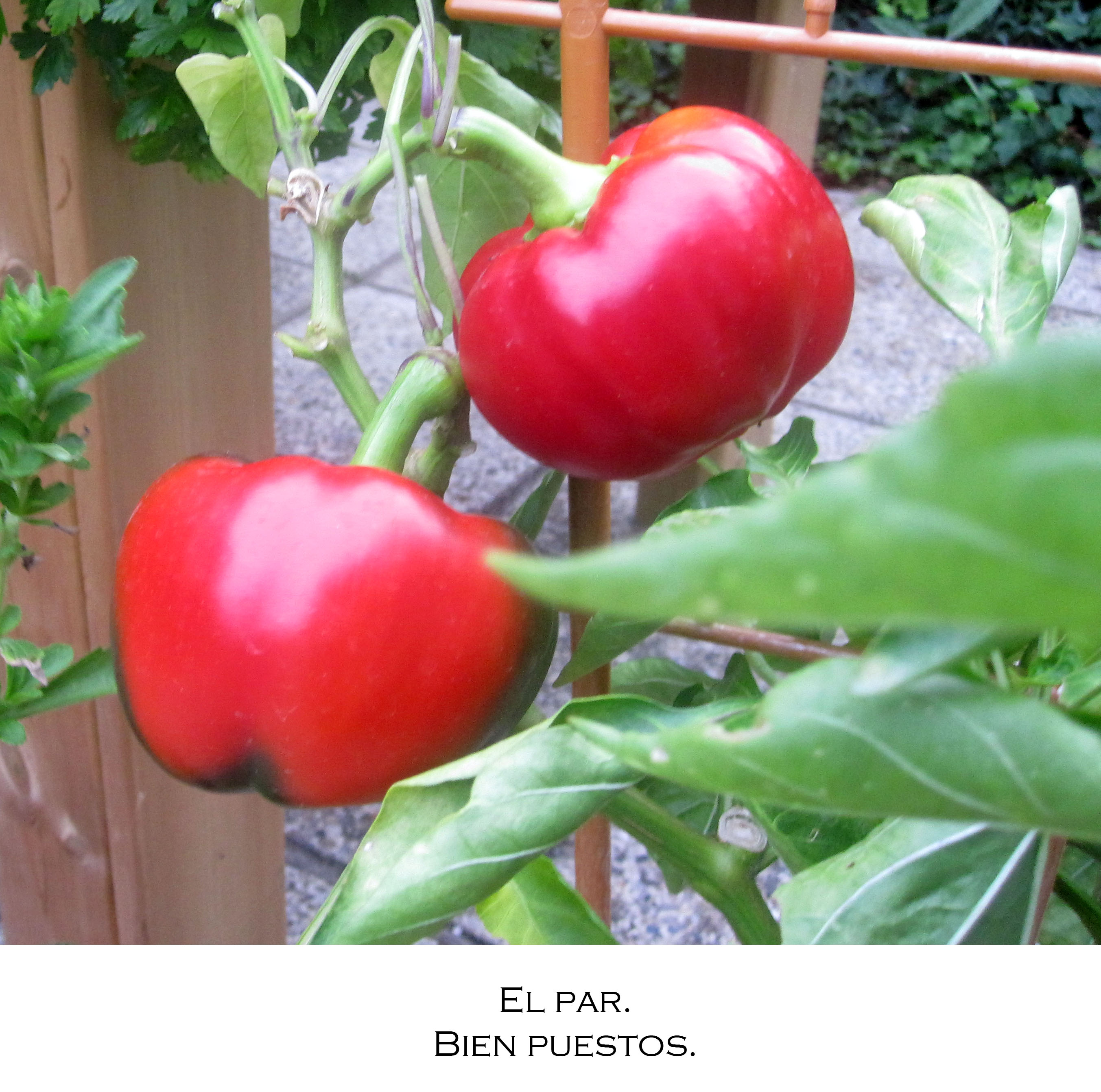 En estas últimas semanas,  han aparecido, con un par, un precioso par de pimientos…Creo que pueden ser aliados en el futuro…