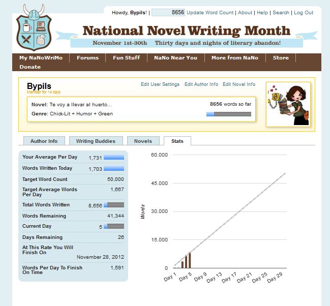 Estoy con esto del NaNoWrimo. Durante este mes, me he propuesto escribir 50.000 palabras ( ya estoy viendo que son muchas) con forma de novela. A pelo. A saco.