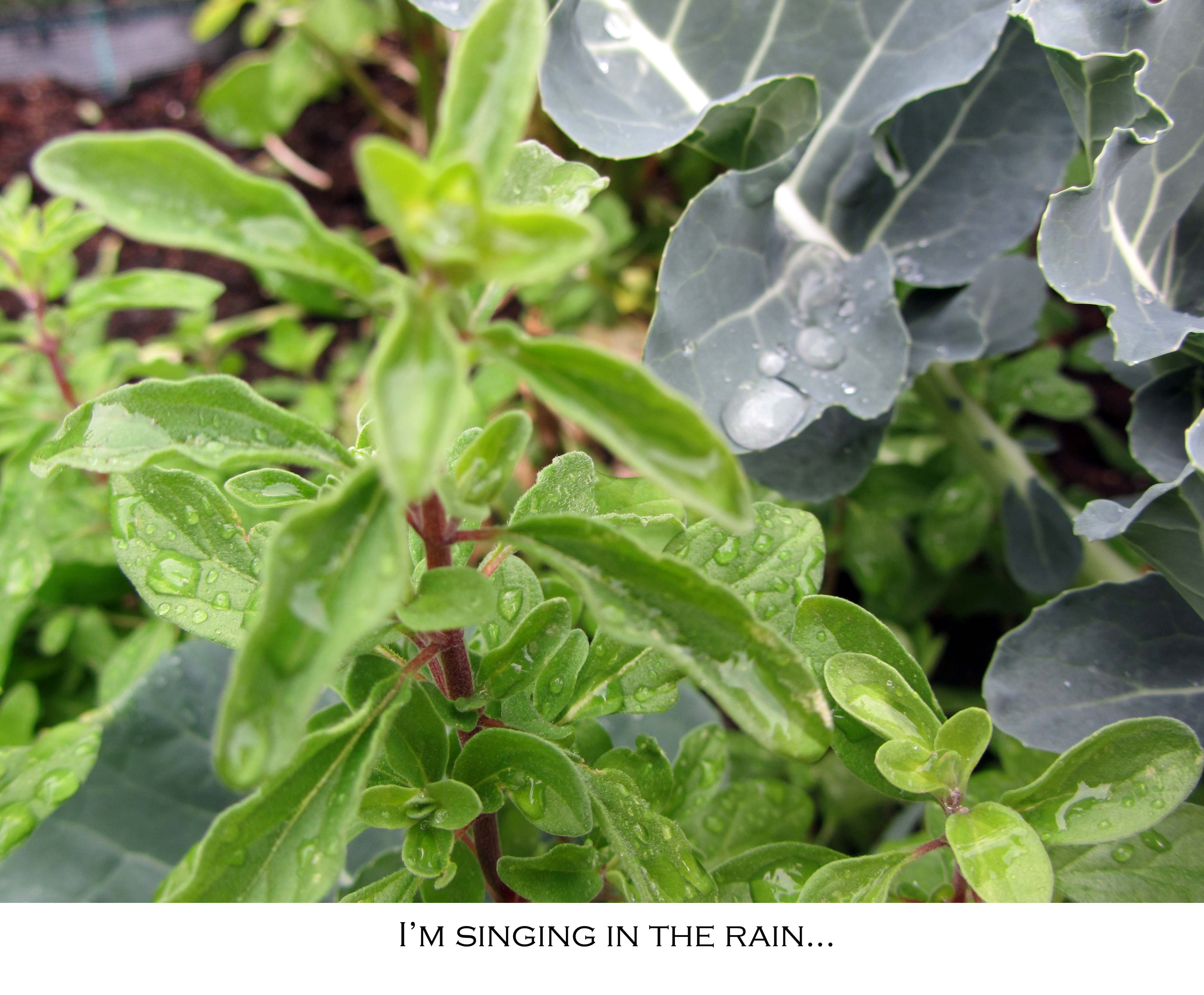 ¿Quién canta eso? Me he preguntado. ¿Un vecino optimista?... y entonces, he visto a la rúcula, al perejil, al orégano y a los guisantes, ejecutando una bonita coreografía con las gotas de lluvia…