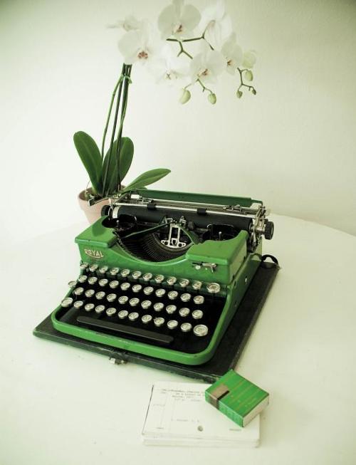 Encontré aquella antigua máquina de escribir, arrinconada, en el almacén de la oficina. Su intenso color verde me fascinó…Me la llevé a casa.
