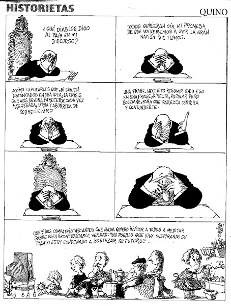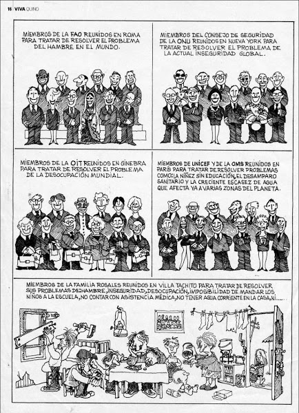 En la Feria del Libro celebrada en Buenos Aires, Quino ha estado firmando ejemplares de sus obra y ha participado en un acto en el que ha respondido a las preguntas de sus lectores. Ha recordado que la sopa, el alimento odiado por Mafalda hasta extremos insospechados , era una alegoría. “… a los movimientos militares que teníamos que tragarnos». En un principio, la tira iba dirigida al público adulto.