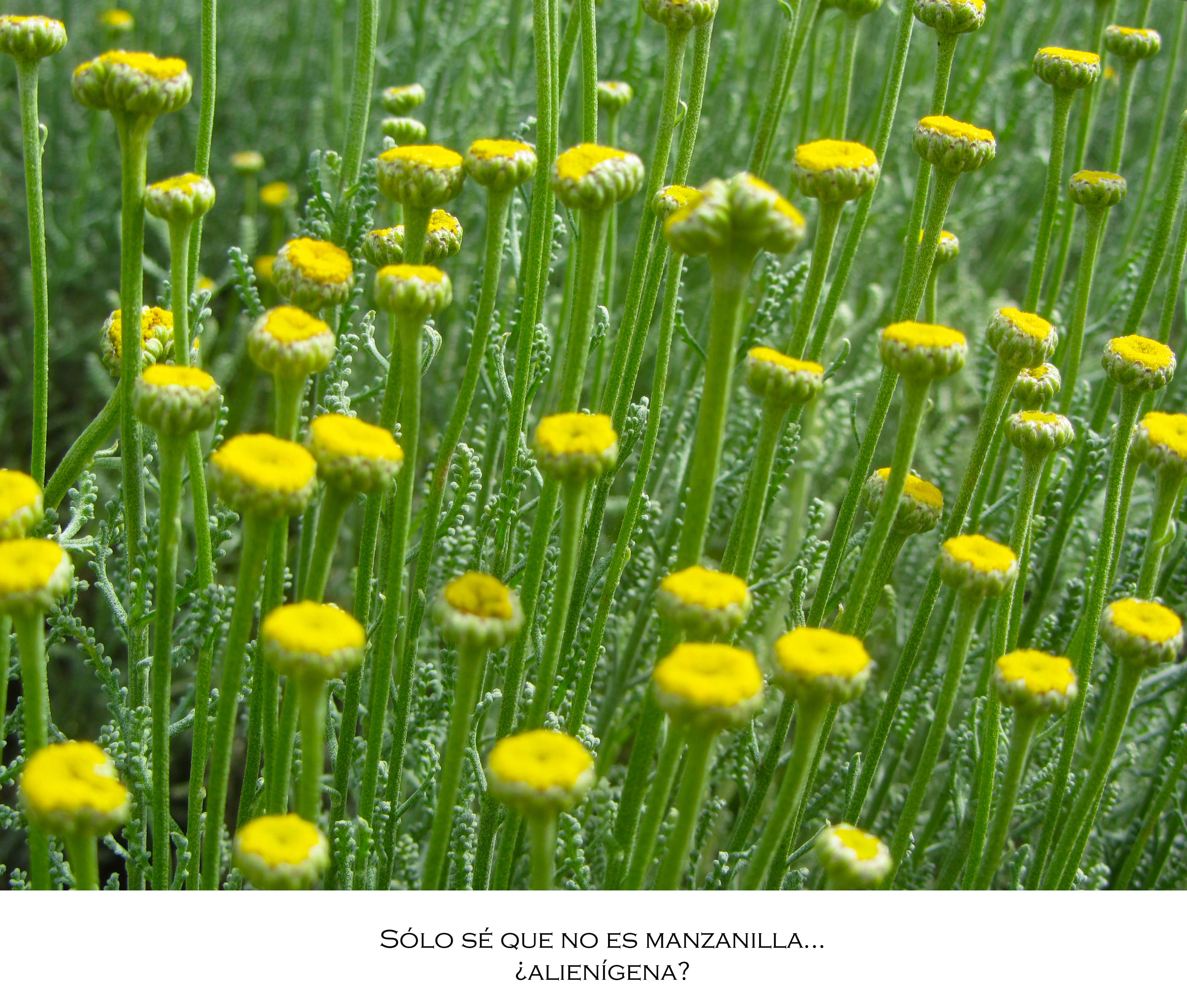 Sé que no es manzanilla. No huele a manzanilla , no le salen pétalos blancos y se despliega en un color amarillo que, al atardecer , parece fosforito. Esa colonia de flores orgullosas, me recuerda a la vida alienígena… y no sé por qué.