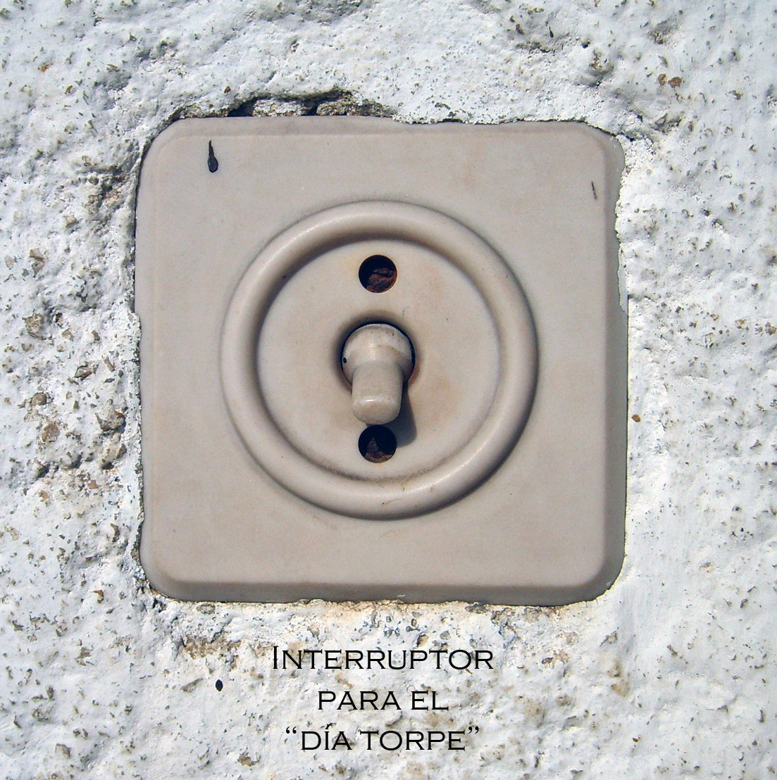 Los días que estoy Mr.Bean, Bridget Jones o simplemente torpe, me gustaría tener ese interruptor a mano. En un rápido movimiento-click-clack-apagaría y encendería y recuperaría el modo normal… Todo se inicia con un cappuccino sin azúcar. El azúcar de ese cappuccino matinal, es imprescindible. La única dosis permitida del día. Alimento para mi cerebro que es de esos, a los que cuesta despertar…Y así, en estado zombie, busca en la despensa, rebusca sobrecitos …Tómate el cappuccino sin azúcar. Vale. Ahí, ya le hubiese dado al interruptor ( y hubiese descubierto un paquetito de azúcar, escondido, detrás de las botellas de aceite.)