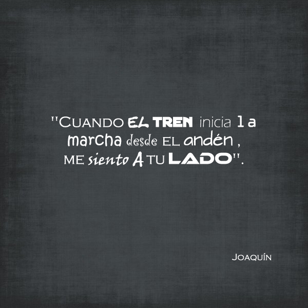 «Cuando el tren inicia la marcha desde el andén me siento a tu lado».