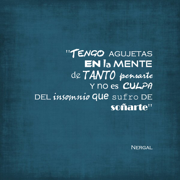 «Tengo agujetas en la mente de tanto pensarte y no es culpa del insomnio que sufro de soñarte»