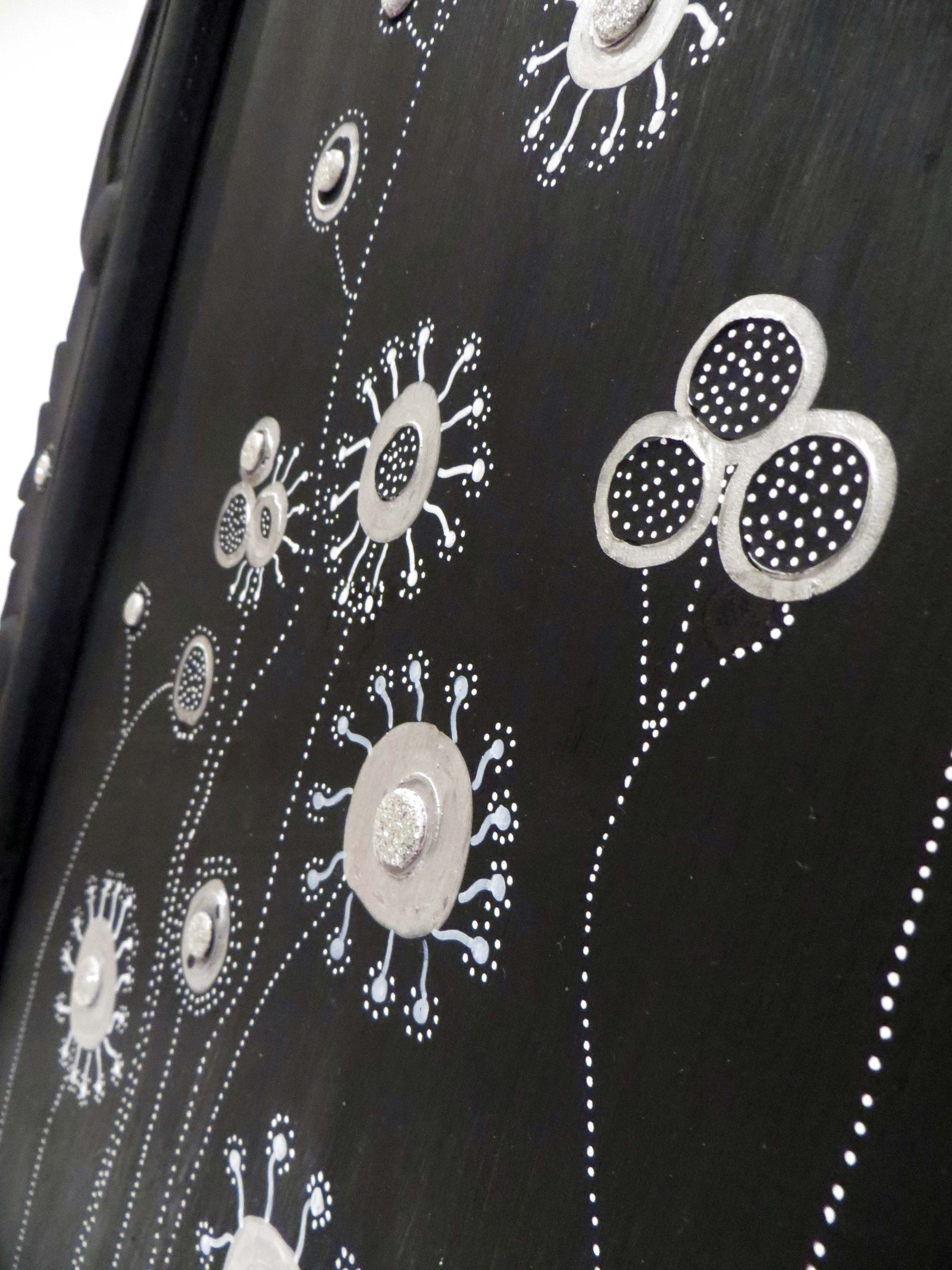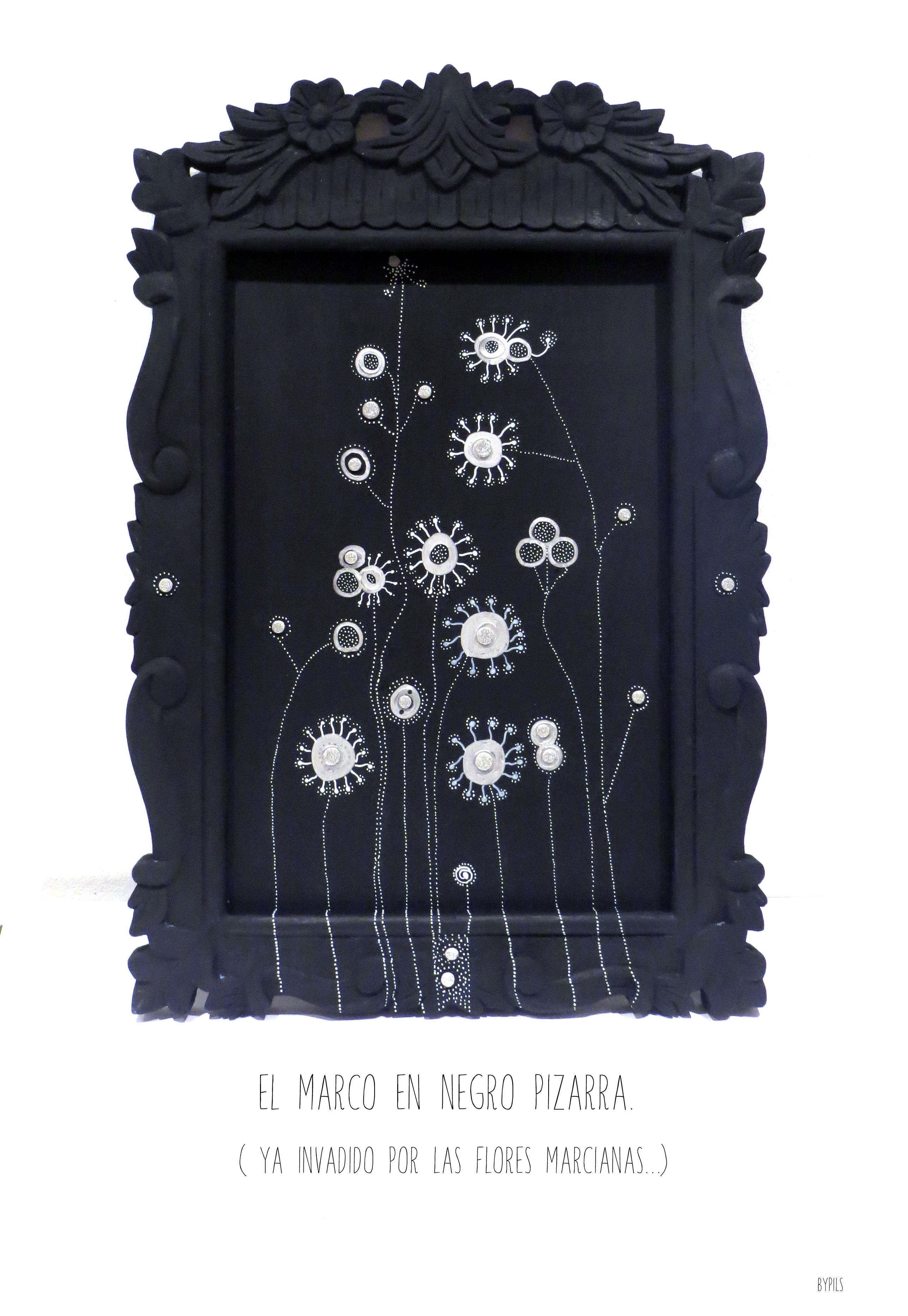 Así que ahora tengo un antiguo espejo que fue un cuadro hippie y que ahora es un extraño marco negro al que le han crecido unas Flores Marcianas…