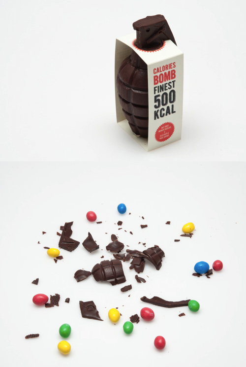“Una bomba calórica”. ¿Cuántas veces hemos ido a comer algo y hemos oído esta expresión? Pues hay una gente que vende chocolate y lacasitos y, directamente, llaman al producto Bomba Calórica. Es más, lo han convertido en una granada. Más claro, imposible : 500 Kcal.