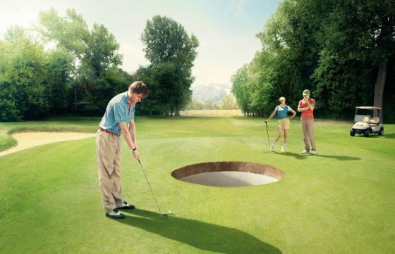 Mis intentos de aprender (atención al verbo “aprender”) a jugar al golf, han sido infructuosos…No soy de golf…Se ve que no tengo demasiada orientación espacial y no acabo de ubicar la distancia entre el palo y la bola. Recuerdo mi momento más patético, tras una agotadora sesión en la que la que me dolían las manos de tanto hacer agujeros en la hierba( ahí ya se veía que algún día plantaría tomates ), cuando llegaron unas señoras inglesas de muy, muy avanzada edad . Se situaron a mi vera y se pegaron media hora de tiros fluidos y lejanos. Ahí ya me dije: esto no es lo mío.