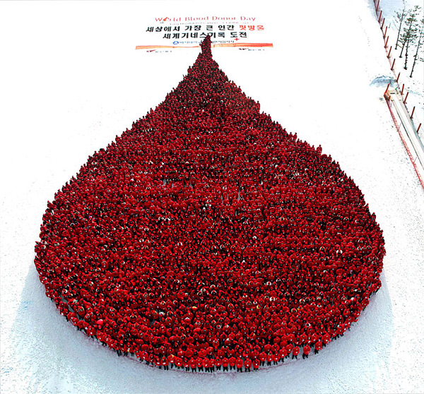 Más moderna ( y muy ingeniosa) la campaña para la donación de sangre en Corea ( esta vez, del Sur). Aquí participan 3000 estudiantes de medicina.