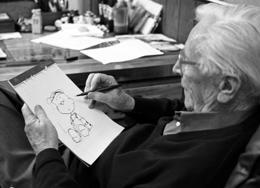 Lo hace por medio de Snoopy, el simpático perro que duerme encima de su caseta, porque tiene claustrofobia, Charlie Brown, el niño triste de cabeza grande o Woodstoock ingenioso pajarillo amarillo, entre otros magníficos personajes.
