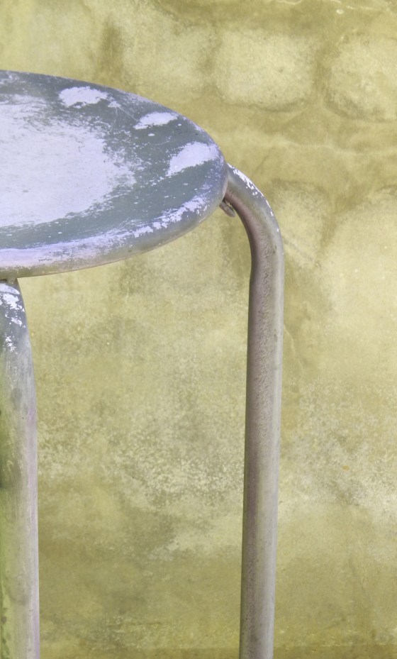 Lleva muchos años conmigo. Es un taburete auxiliar que me ha ido fenomenal: para la habitación violeta, para alcanzar las cajas más altas de las estanterías, para cortar el pelo en sesión de peluquería casera, para ubicar mi vaso de agua con gas con hielo y el libro al lado de la tumbona… Así que, le toca otra capa. Para seguir en mi vida, a base de capas… Esta va a ser de color azul …