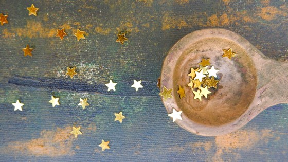 He encontrado una cuchara de madera y unas estrellas de unas manualidades infantiles y me ha salido esta “Cucharada”.