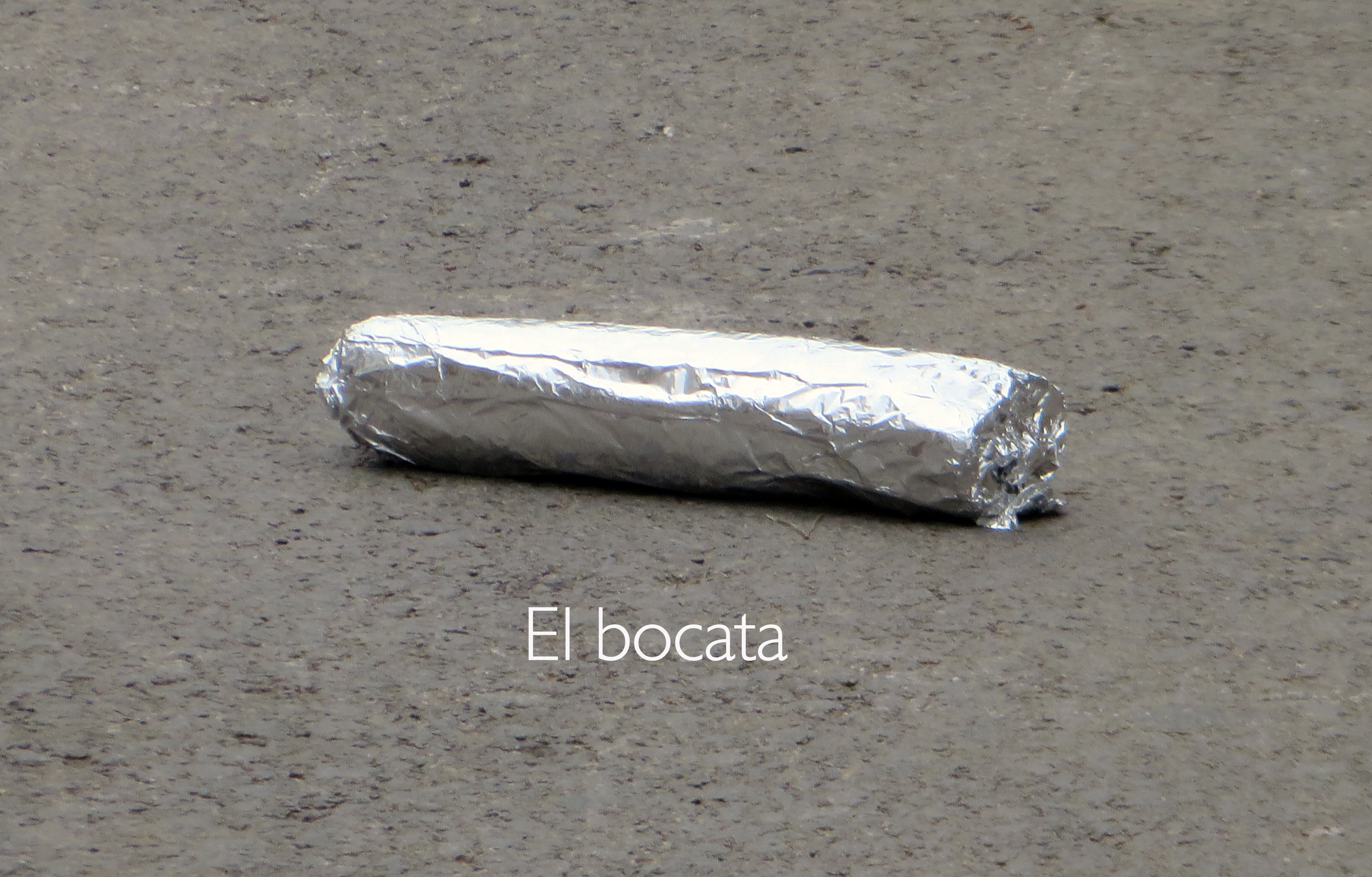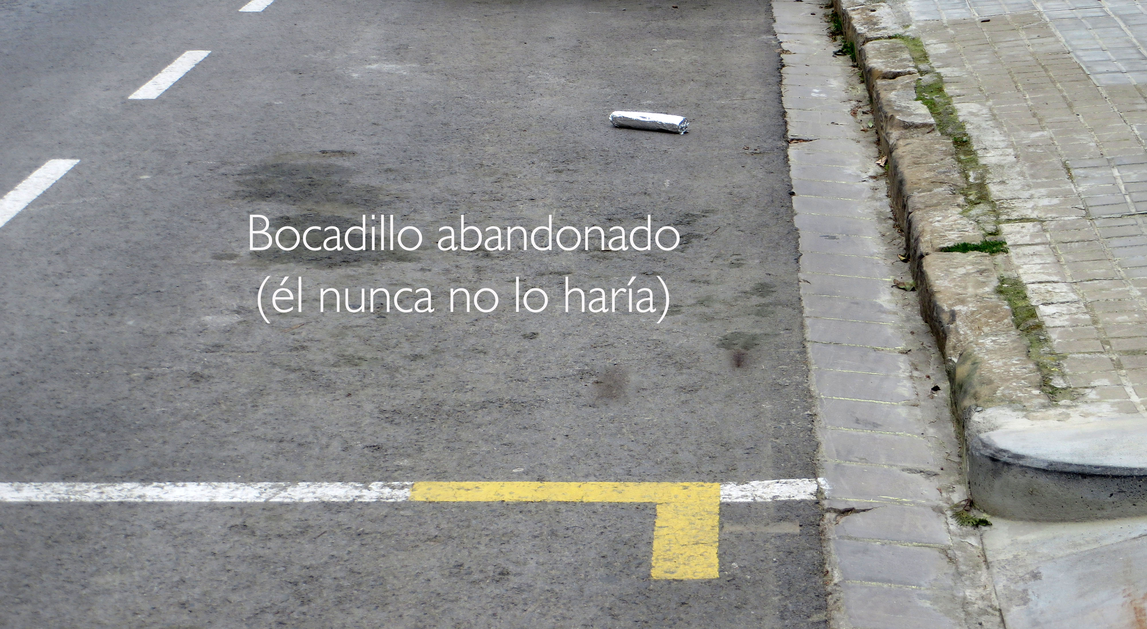 Y el bocadillo está, aquí, tirado en la calle… Envuelto con primor pero …abandonado…