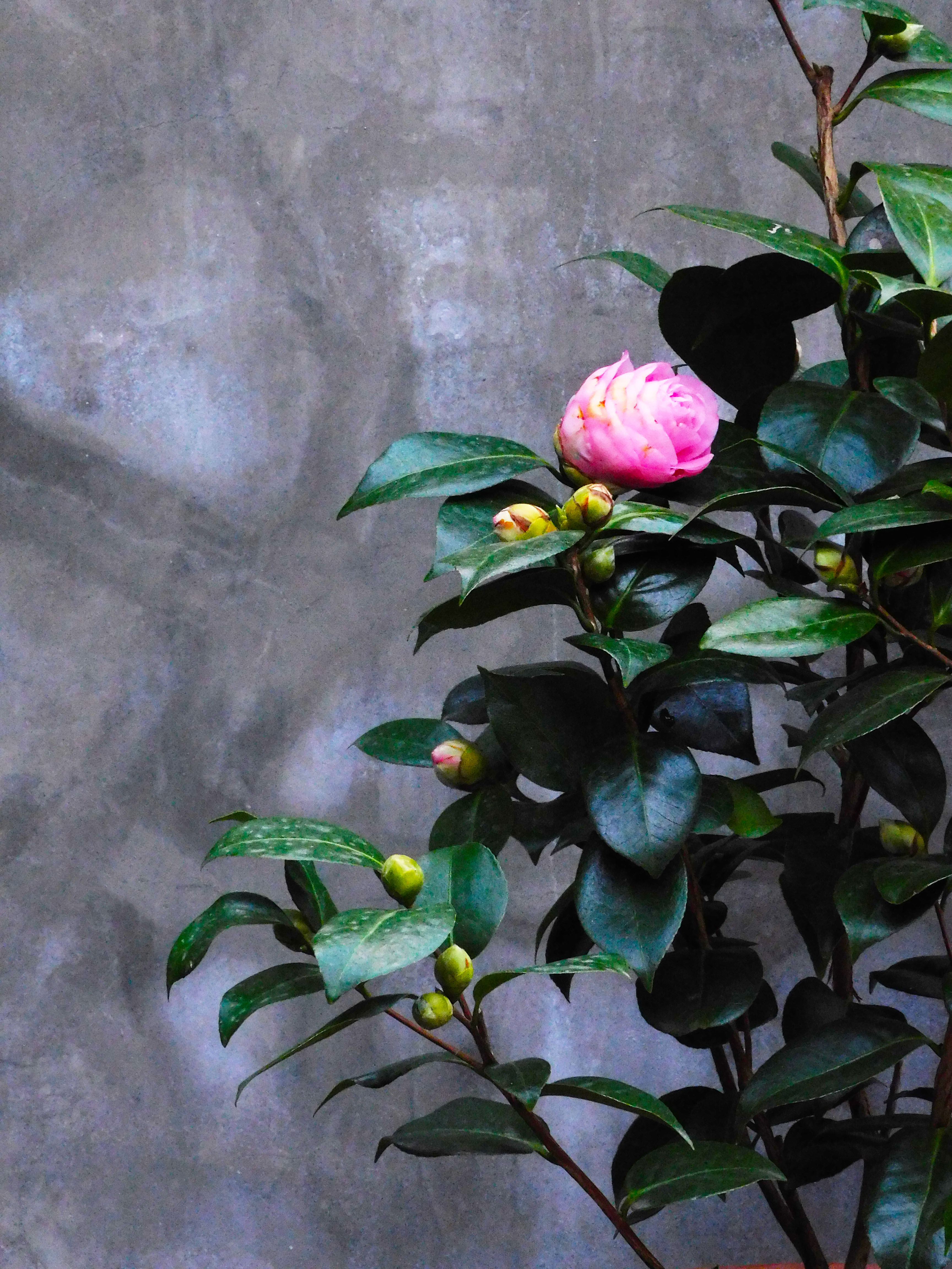 El pasado mes de octubre me regalaron una camelia ( Camelia Japónica). Es un pequeño arbusto, también llamado Rosa de Invierno de Japón, con hojas perennes de color verde intenso y unas flores que funcionan al revés que las que yo conozco : florecen de invierno a primavera.