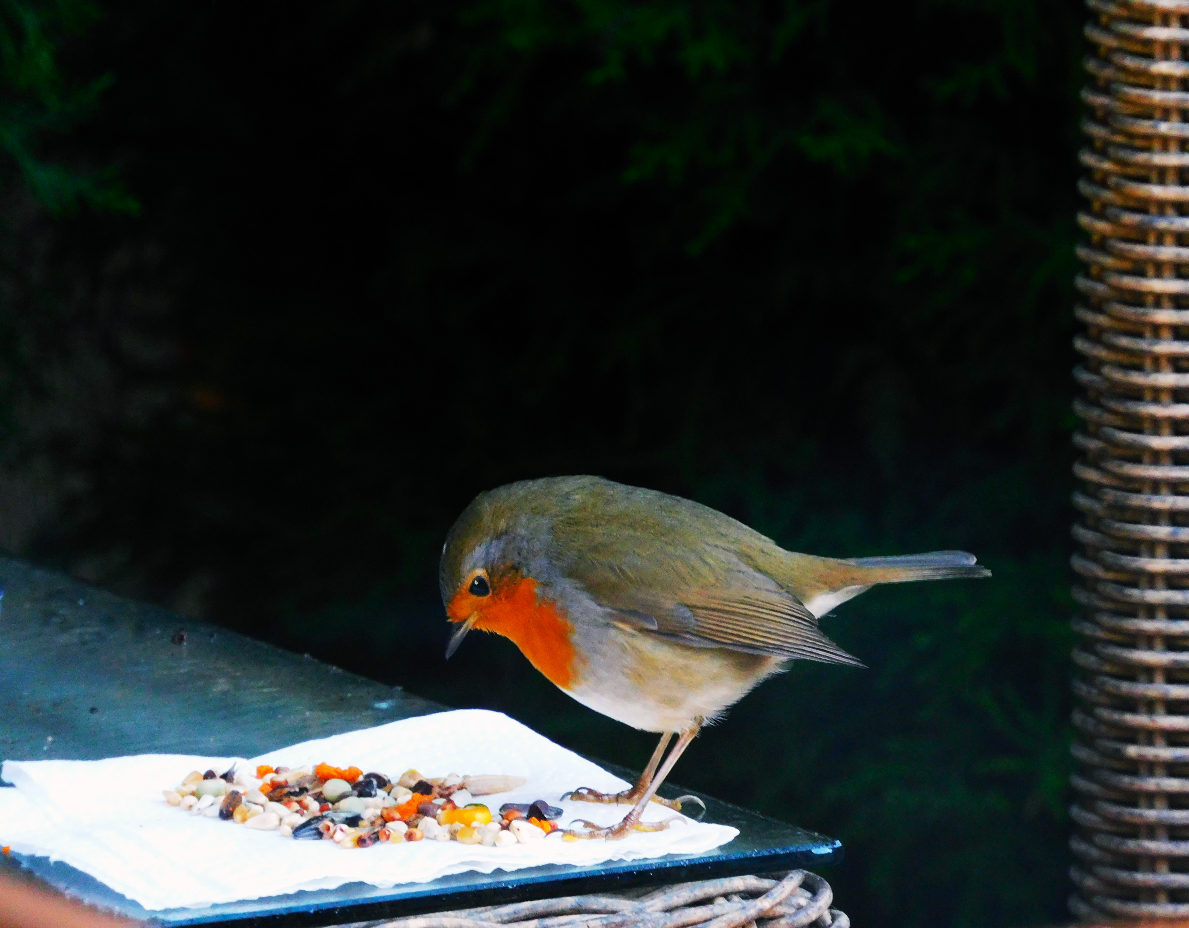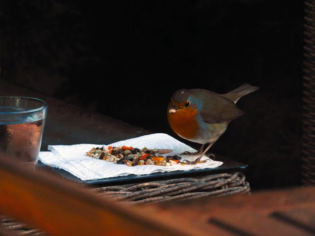 Descubrí que es sociable con otros pájaros, pero muy territorial. Por lo que leo, será raro que lo vea en pareja hasta dentro de unos meses y una vez realizado el cortejo, estos pájaros van muy a lo suyo, en plan independiente. El petirrojo macho deja a la hembra estar en su territorio, pero, después de la cría, tanto la hembra como sus vástagos deben abandonar el nido y buscarse su territorio. Y cada uno, el suyo.