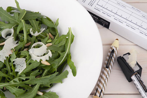 Primero,  unos lápices de parmeggiano.  Para sacarles punta.