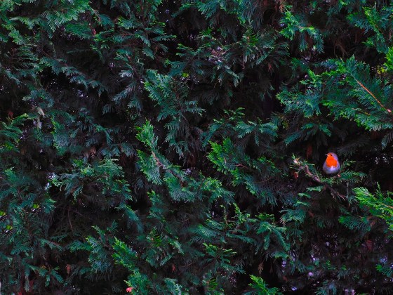 Finalmente, hemos creado un problema territorial entre las aves de la zona. Al colgar el comedero para el petirrojo, convocamos a los pájaros autóctonos al bufé libre de agua y semillas. Imposible poner un rótulo con el “Reservado el derecho de admisión”. Es como poner puertas al cielo …