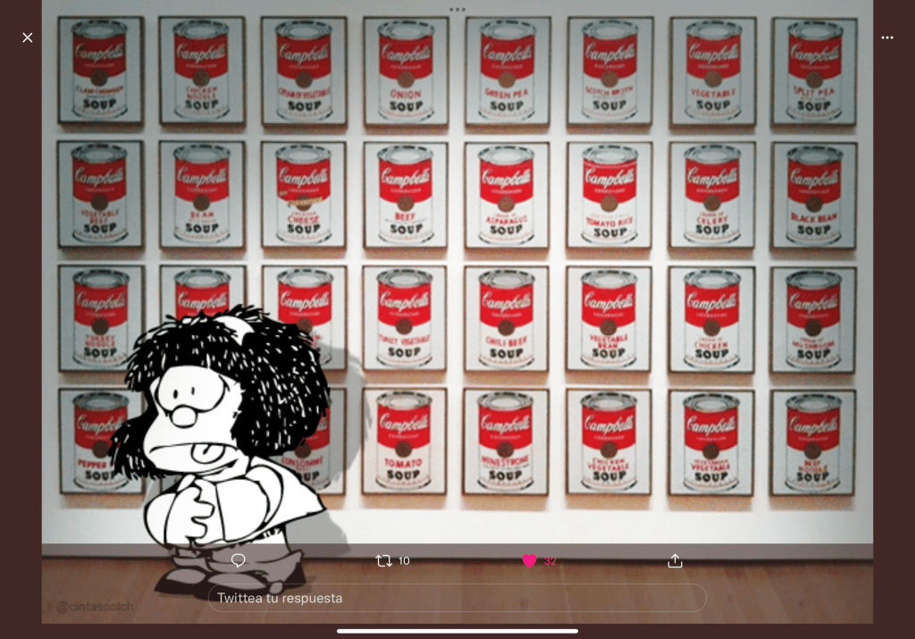 ¿Adónde? Publicado el 21 julio, 2022 por bypils 1 Quino , maestro. Hace poco se celebraba su 90 aniversario. Se le echa mucho de menos. Esta última , es una genial ilustración de @cintascotch Tu voto:Compartir, imprimir y bla, bla, bla... Haz clic para enviar un enlace por correo electrónico a un amigo (Se abre en una ventana nueva) Correo electrónico Haz clic para imprimir (Se abre en una ventana nueva) Imprimir Haz clic para compartir en Reddit (Se abre en una ventana nueva) Reddit TweetCompartir en TumblrMe gusta Cargando... Relacionado