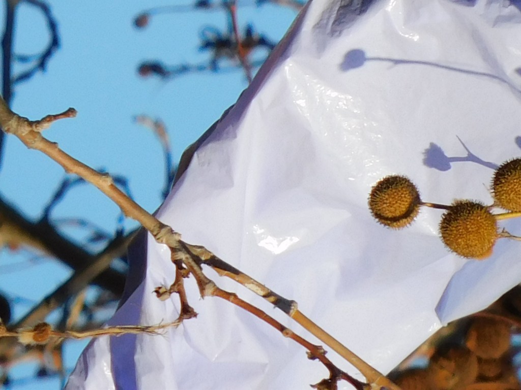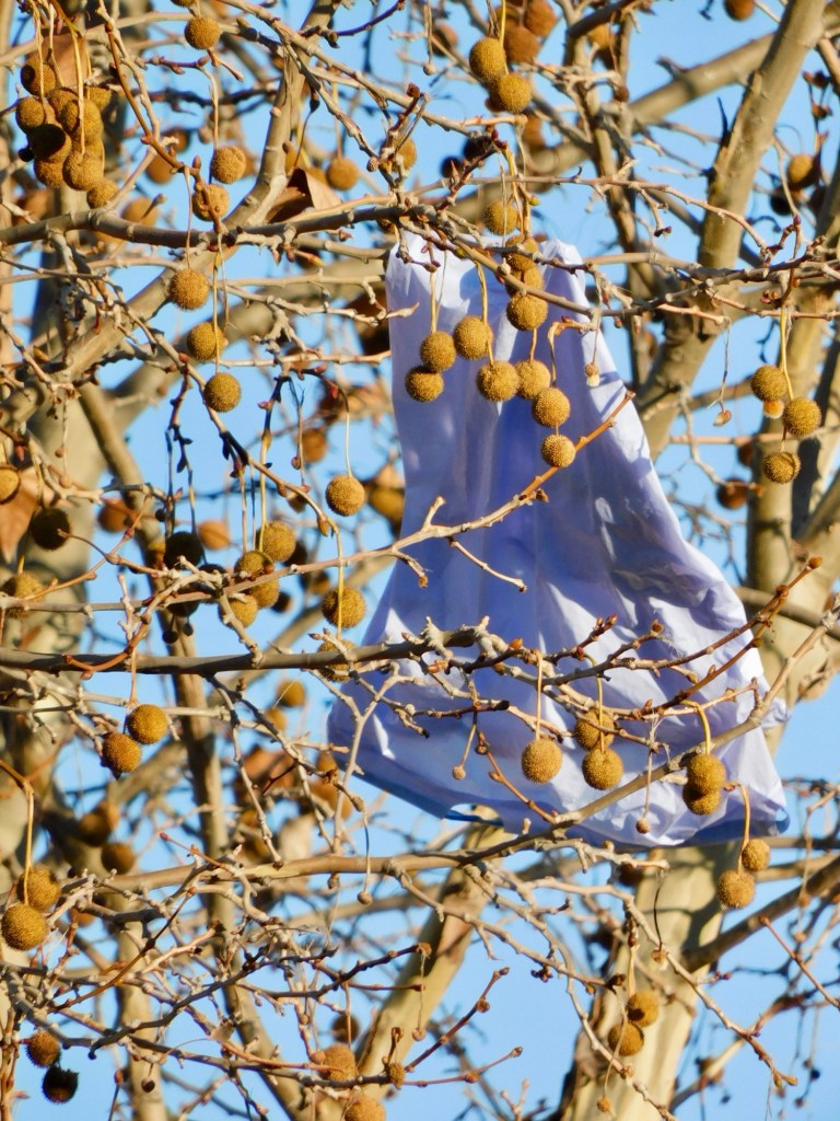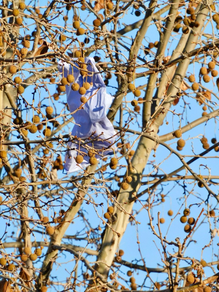 Una bolsa atrapada entre las ramas, una “enseña” blanca que no debería estar ahí.