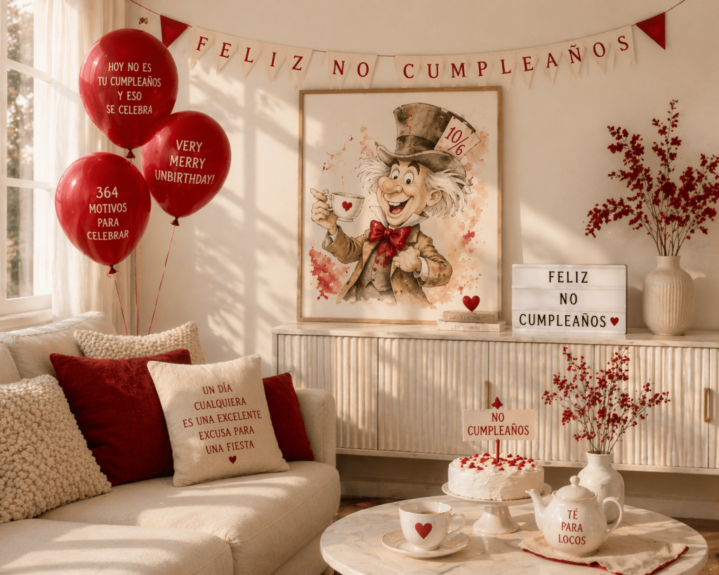 Hoy voy a hacerle caso al Sombrerero Loco. La idea del unbirthday pertenece al universo de Lewis Carroll, aunque se hizo universal gracias a la película animada de Disney, Alice in Wonderland (1951), donde el Sombrerero la convierte en canción y en fiesta: “Very Merry Unbirthday”.