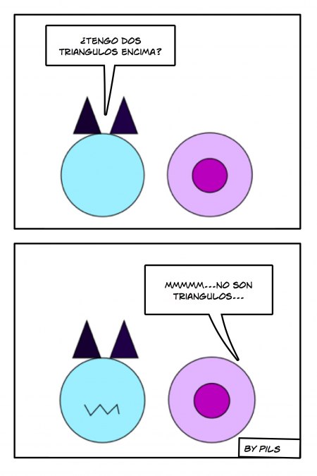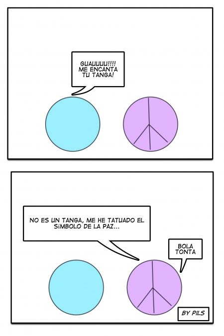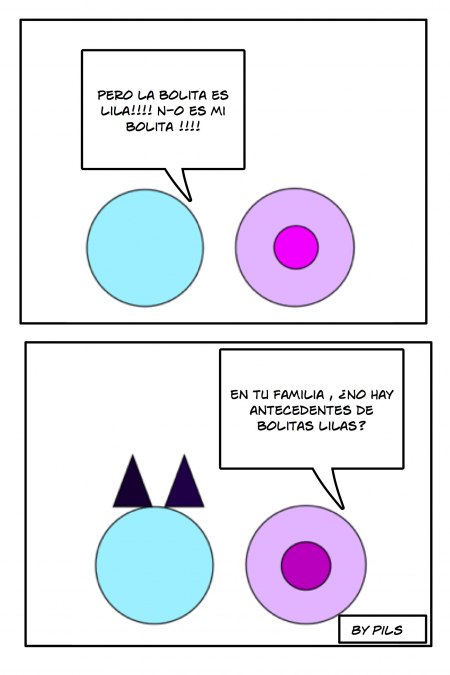 Una vez realizada la figura ( las dos bolas con sus formas geométricas accesorias : triangúlos, círculos, cuadrados, rayas…), hacía una captura de la selección de pantalla. A partir de ahí, montaba estas imágenes en el programa «Comic de Luxe» para insertar los bocadillos y los textos. El propio programa exporta a un formato .jpg que ya podía publicar en el blog.