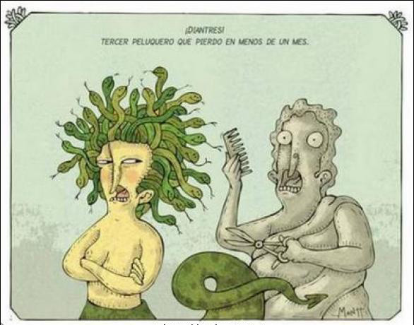 4) Cabreo monumental : Mira que le dijiste que no muy corto de la nuca. Le enseñaste la foto que llevabas como muestra ( Meg Ryan), le insististe en que no querías mechas pero… te hicieron dudar. Te convencieron o los convenciste tú a ellos ( “Lo quiero e-x-a-c-t-a-m-e-n-t-e como esta foto” (exiges). La cosa es que has salido de allí con tu pelo transformado. Te ves en un escaparate y te horrorizas. Llegas a casa y maldices al peluquero/a que te ha dejado la cabeza modelo Mafalda. Finalmente, pasas tu propio proceso de duelo interno hasta que el pelo vuelve a crecer ( por qué siempre lo acaba haciendo) y aprendes que nunca más utilizarás el sistema”como-esta-foto”.