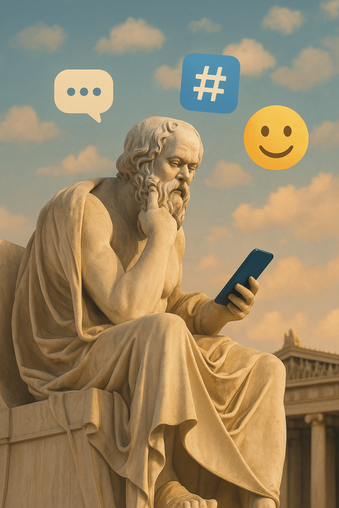 Sócrates luchaba contra el dogmatismo haciendo preguntas incómodas. Hoy, sus preguntas serían invisibilizadas por algoritmos o directamente denunciadas. Su perfil sería cancelado o sepultado bajo una avalancha de haters sin argumentos (aunque entre ellos se contradijeran).