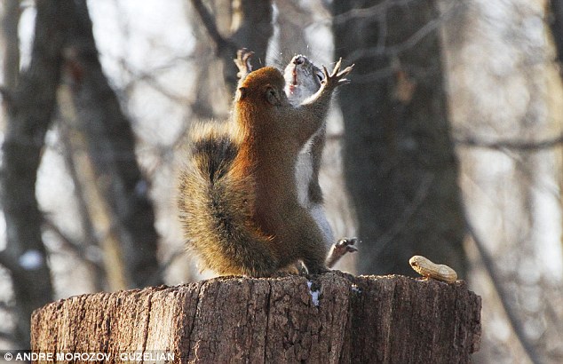 5) En un parque de Canadà, el fotógrafo André Morozov captó esta lucha entre dos ardillas, por un cacahuete.