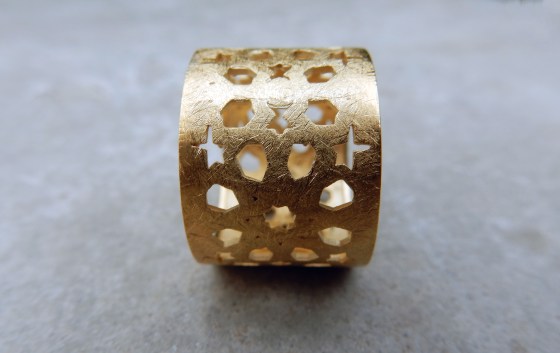Una idea de diseño: le pedí que me hiciera un anillo ancho y plano, de oro cepillado y en el que (yo misma) tenía que escribir Bypils ( ya apuntando egocentrismo con el pseudónimo).