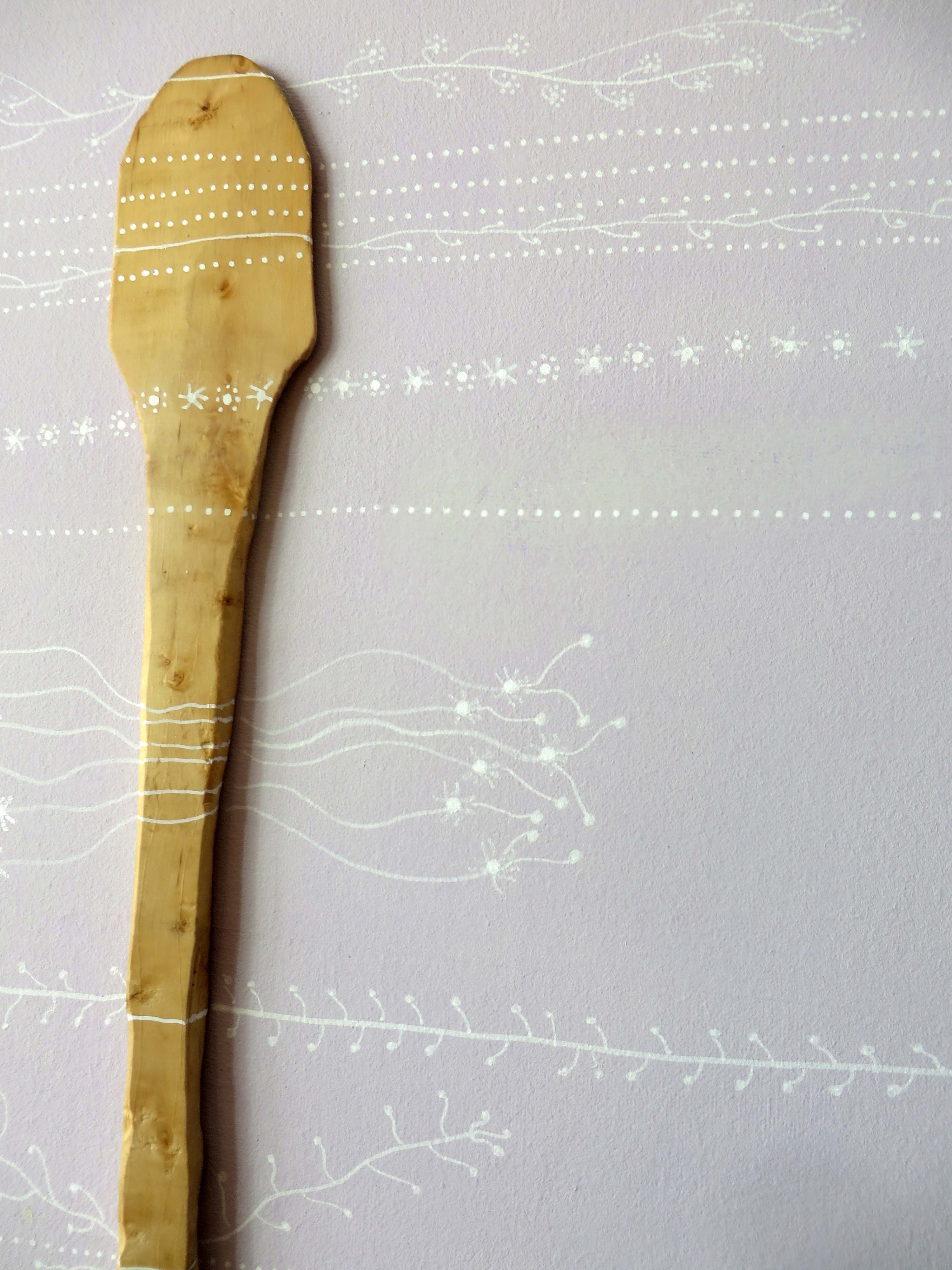 Me la miraba, allí tendida, con una muesca que la hace inviable para cocinar y me ha parecido preciosa. Esa mella, es parte de una historia. De una vida. Es un objeto que tiene muchísimas cosas que contar: desde el inicio, cuando era una rama de boj en el Pirineo Aragonés hasta el momento que se empieza a dar forma, se convierte en cuchara y llega a mis manos, viviendo en mi cocina durante muchos años.