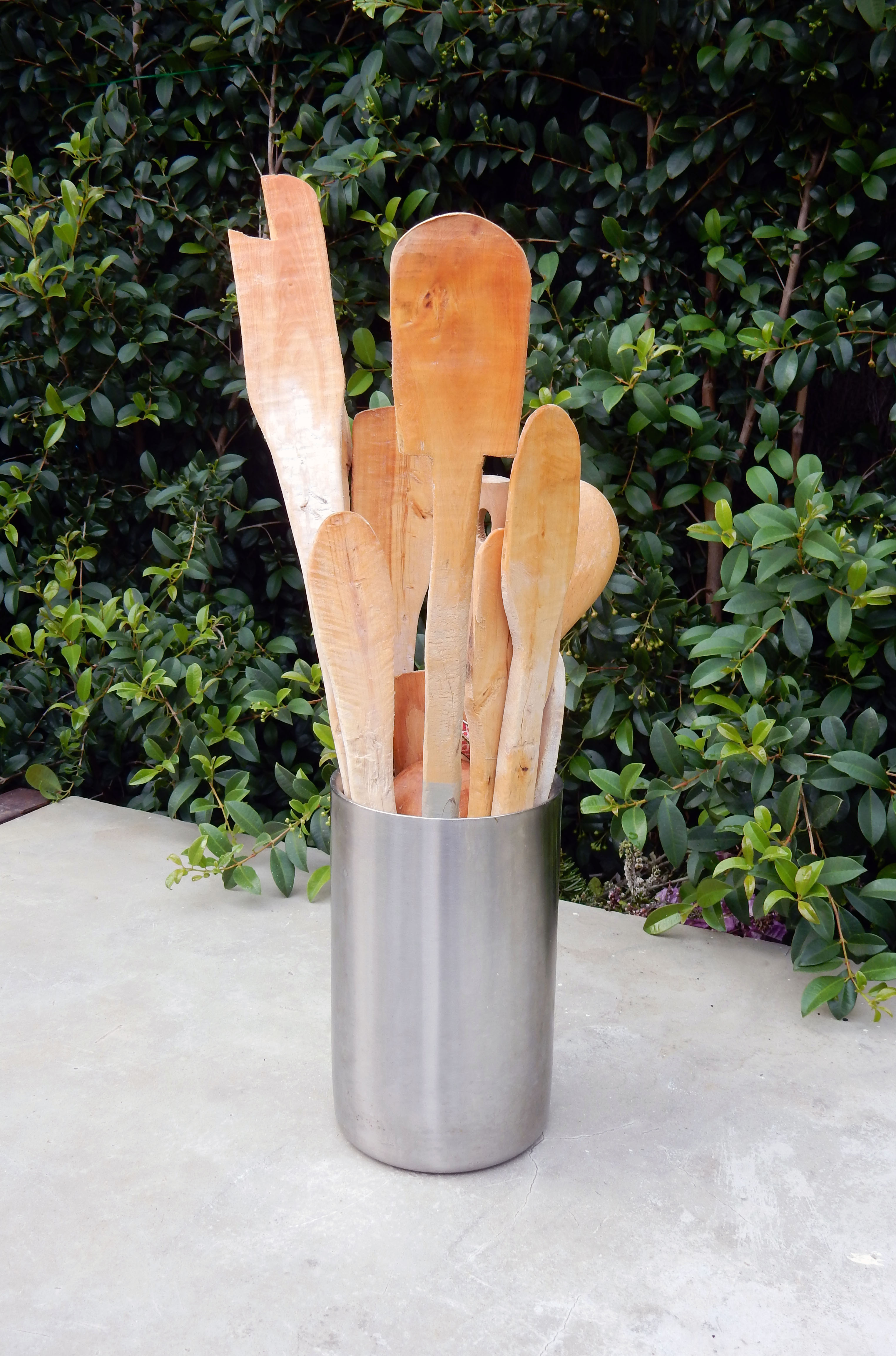 Son cucharas de boj, talladas por manos temblorosas hace ya más de diez años. También conservo espátulas. Me hizo muchas y, aunque cada una que me regalaba era una ocasión única, uso unas para cocinar y otras las convertí en cuadros para rendir homenaje a esas manos que ya no están.