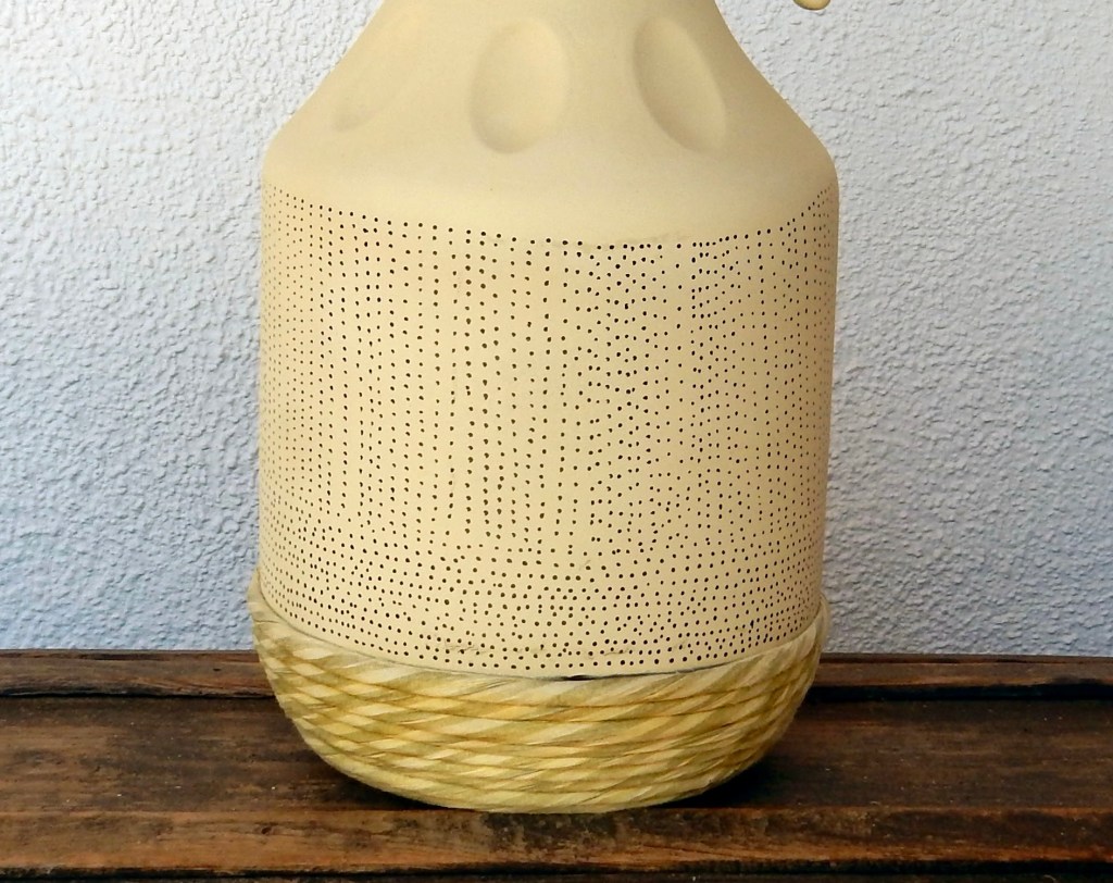 Compré una botella (o garrafa) de aceite de oliva virgen extra. Cuando se acabó el aceite, quise aprovechar el envase de vidrio con el detalle de mimbre en la base.
