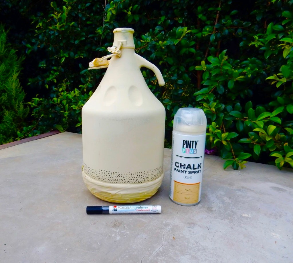 Nada complicado: spray de pintura de pizarra y un rotulador negro. Una vez conseguí un color crema uniforme, empecé con los puntos que, por cierto, siempre me salen mal alineados, pero me relajan.