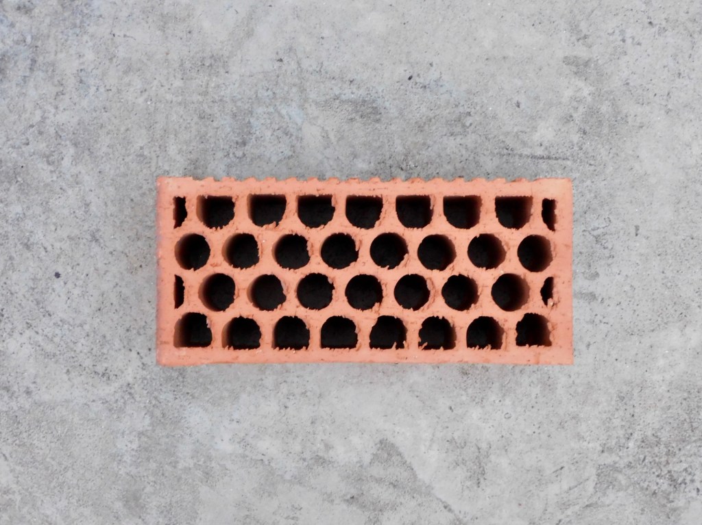 Pero, al final, empecé a mirarlo de otro modo. Esos agujeros ordenados son muy estéticos, aunque sea un ladrillo… Busqué por qué están ahí: aligeran y ahorran material, permiten una cocción más uniforme, crean cámaras de aire que aíslan y, además, dan agarre y resistencia.