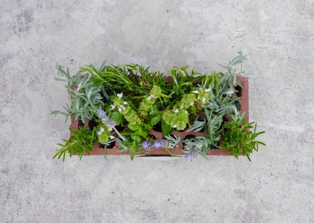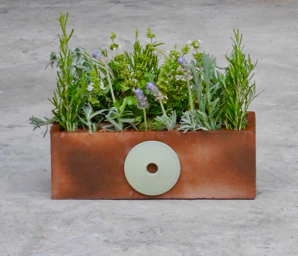 Lo pinté, le pegué una pieza circular y coloqué ramas de plantas aromáticas en sus huecos. Ahora es un secadero natural de romero, tomillo, lavanda y menta.