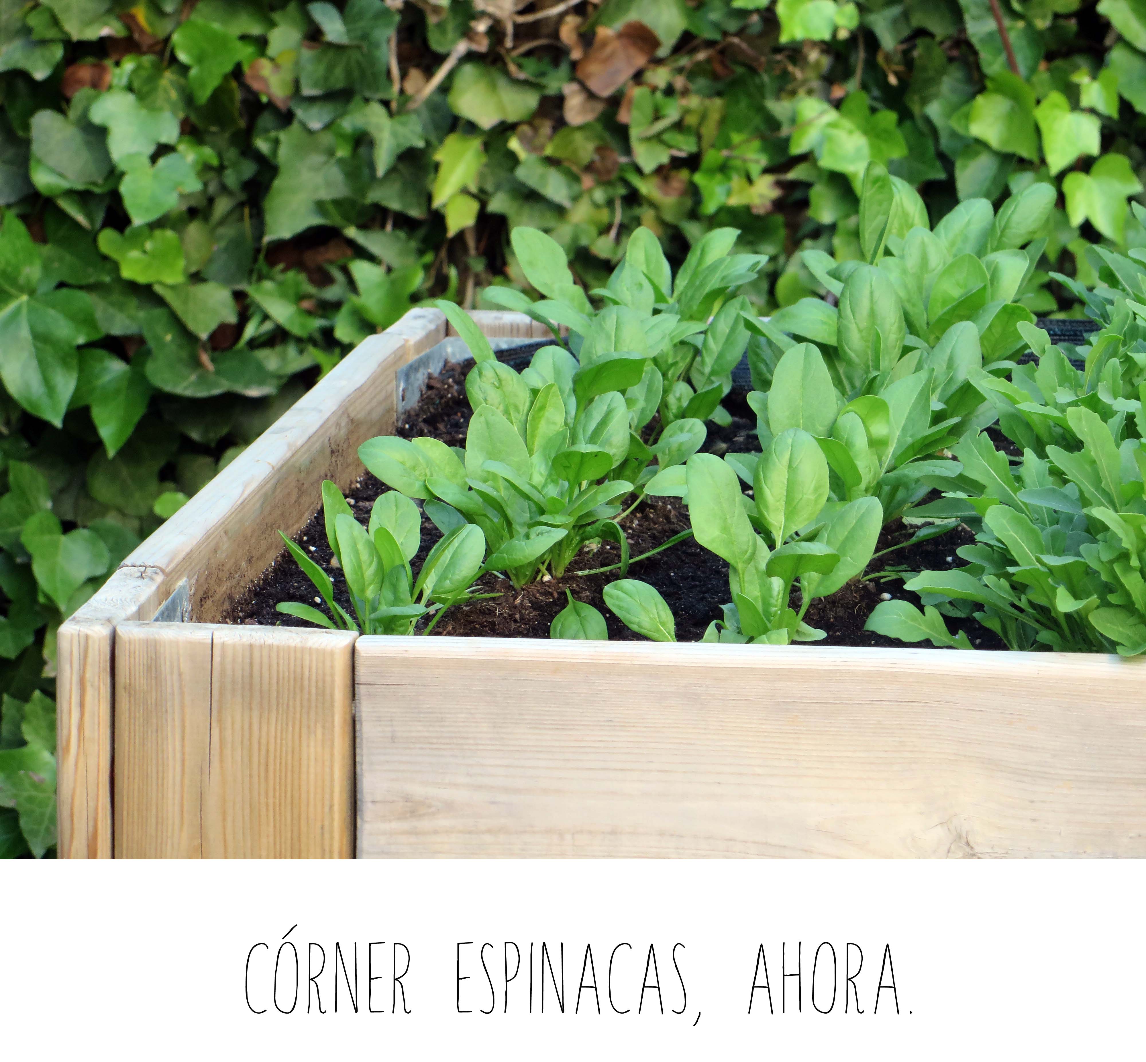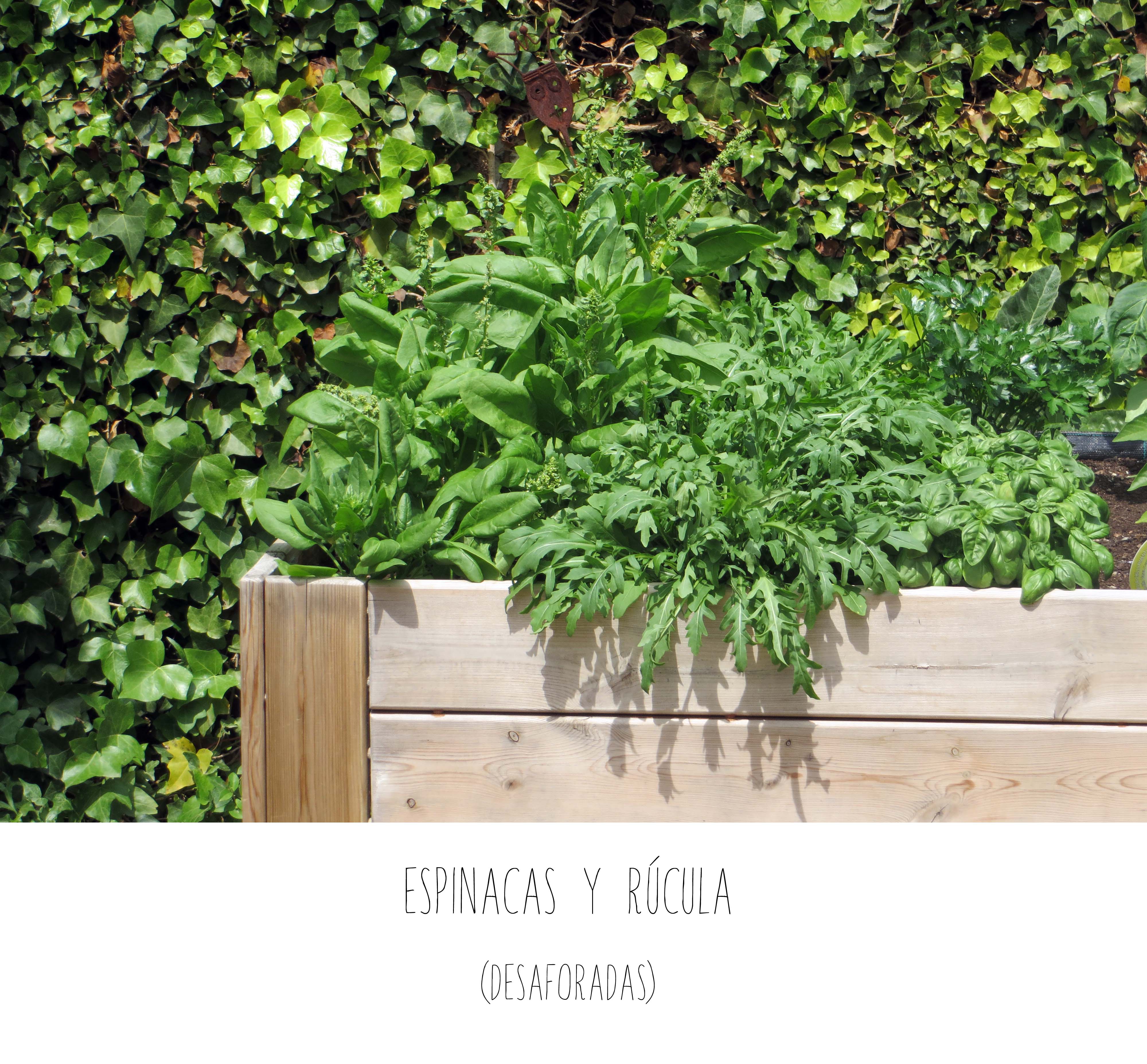 Ya aprendí que si las verduras florecen, vamos mal. Normalmente, es el momento en el que concentran la energía en producir flores y pierden muchas de sus cualidades y, lo más importante, amargan…He hecho una prueba empírica y me he comido varias de ellas en una súper ensalada de espinacas que además de mezclar con rúcula y parmeggiano, he aderezado con una vinagreta hecha con cebolla (doradita), jabugo ( crujiente) y vinagre de Módena. En vista del resultado, he cosechado las espinacas pero no las tengo todas conmigo.