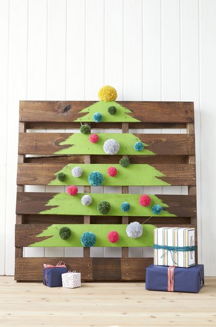 El árbol en el pallet, requiere del pallet y tener una cierta traza a la hora de pintar las simples franjas verdes que lo componen.