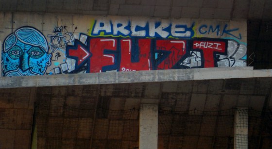 Leo «FuzI» y pienso en ese tipo, con sus sprays, subiendo hasta allí arriba para dejar su firma…No es el tipo de Street Art que más me gusta, pero me pica la curiosidad.