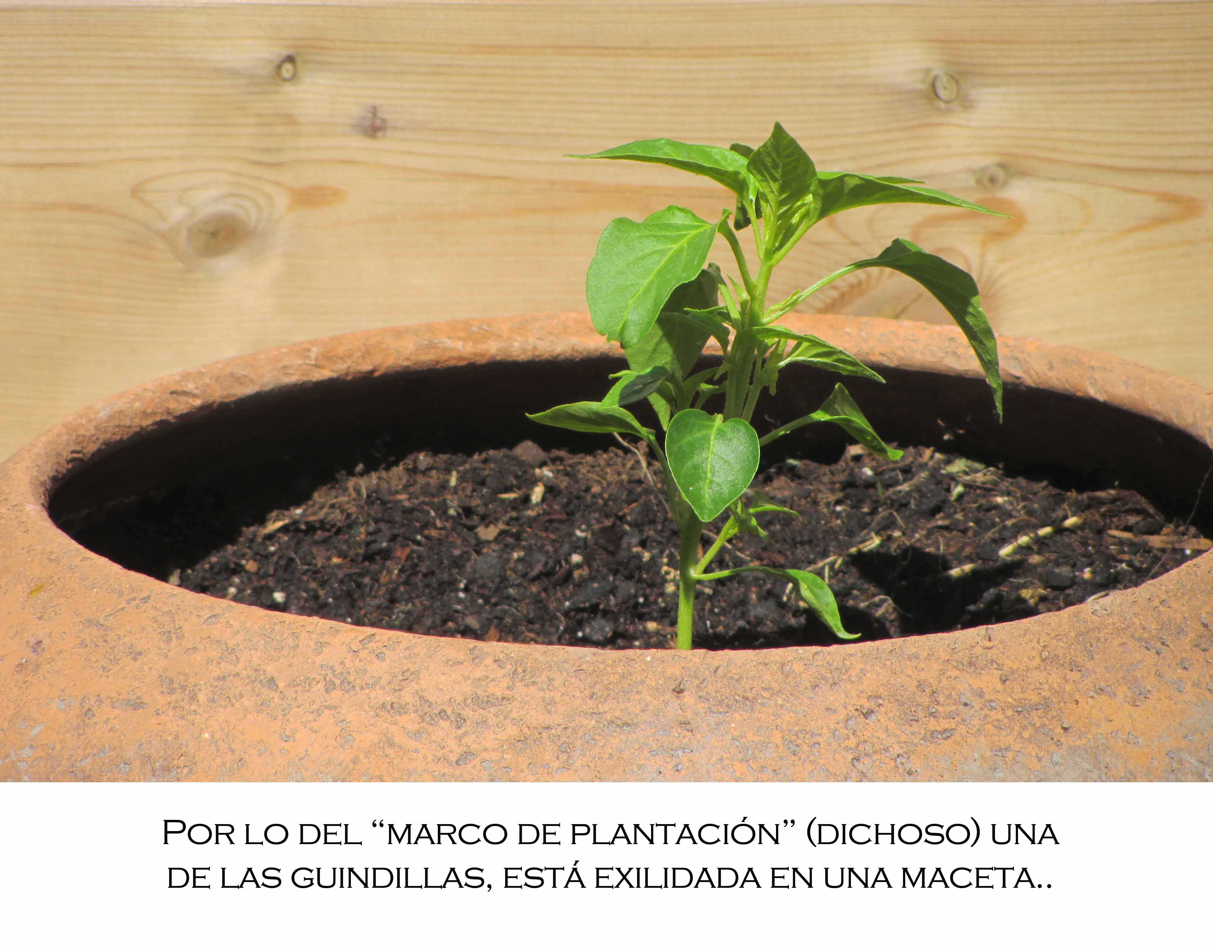 Cuando hacía la foto, me ha sorprendido ese pedazo guindilla que asoma por detrás. ¡Madre de Dios! Es tan grande que se sale del huerto…