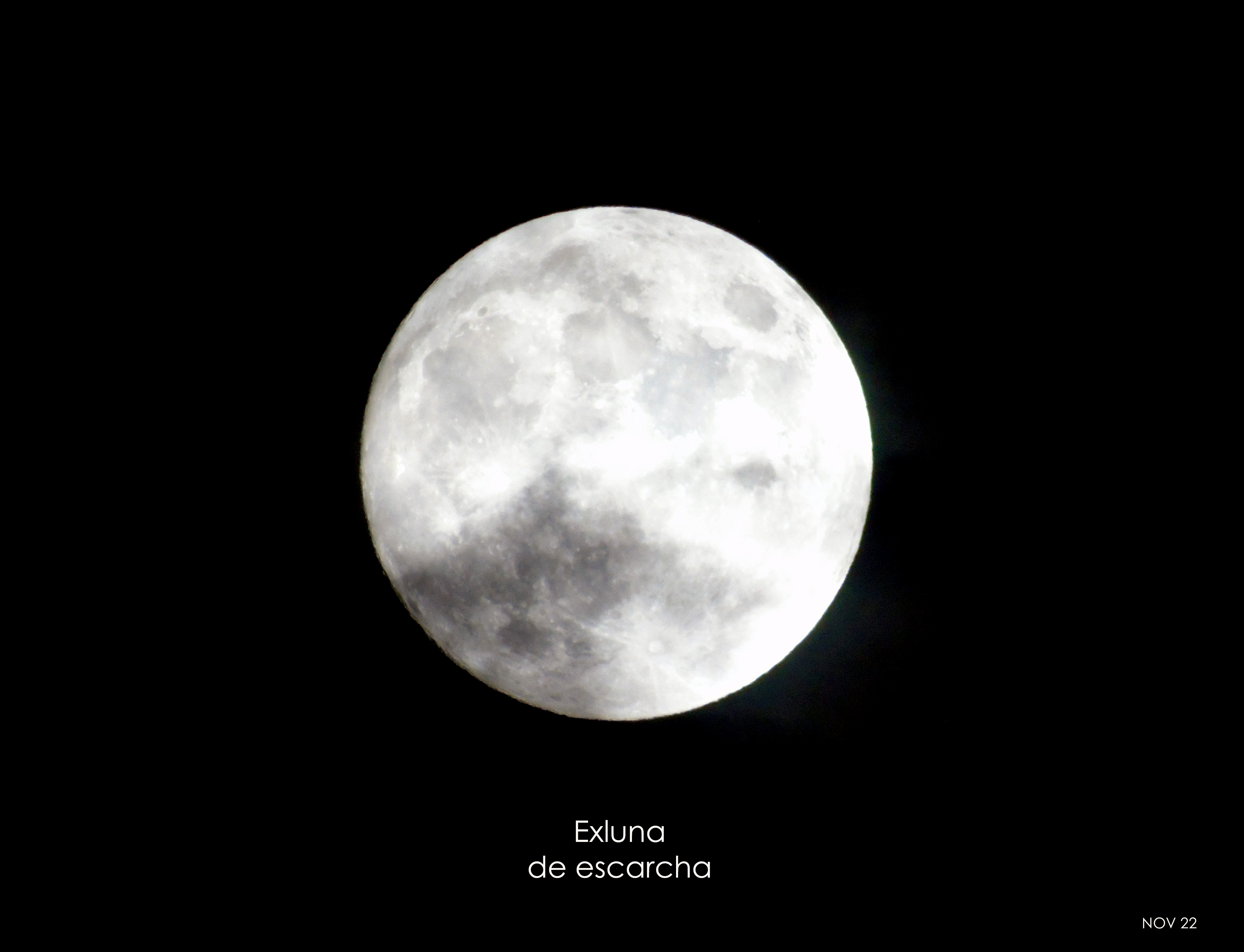 Me avisan que hay luna llena. Hay nubes pero el espectáculo es precioso. Aunque estemos en el mes de noviembre, hago las fotos con una sudadera de algodón. La temperatura ambiental me permite observarla tranquilamente. Sin tiritar ni tener que moverme para entrar en calor.