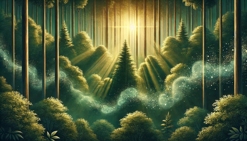 Desde aquí me parece oír a árboles , a arbustos , a plantas, a huertos y a flores cantando de alegría. Si no fuera por sus raíces creo que hasta bailarían.