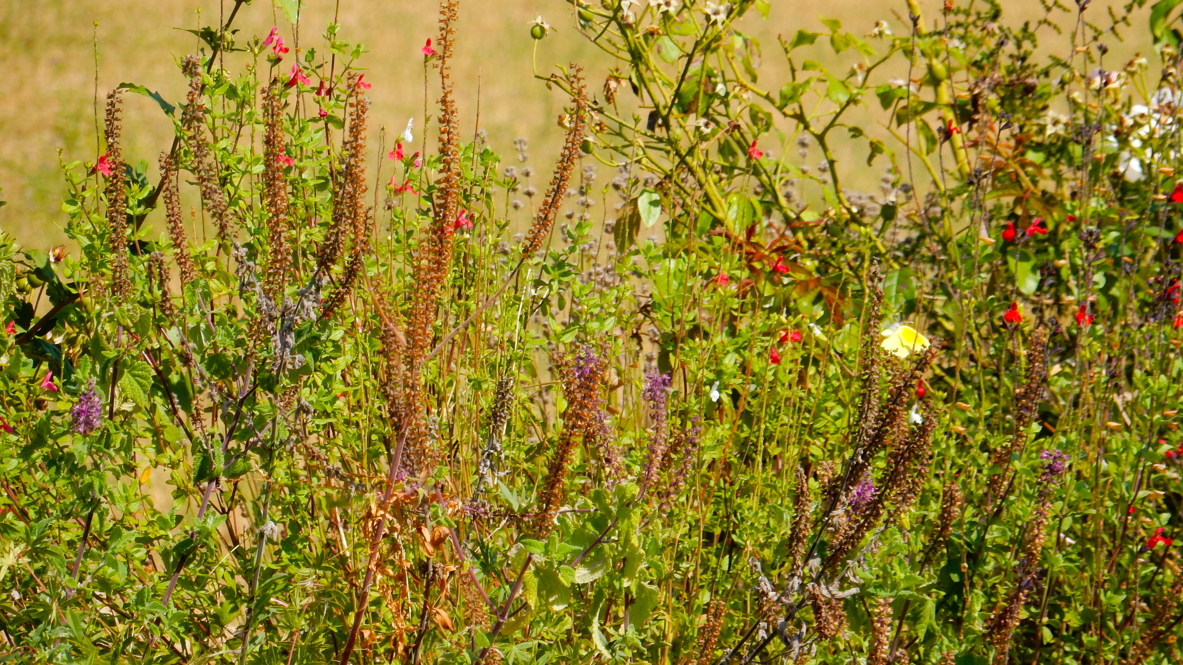 Una cosa es observar mariposas y , otra, encontrarme con este ejemplar de lagartija, que por el tamaño, yo digo que es un lagarto … Pasa completamente de mí y, tras un rato al sol, desparece entre las flores.