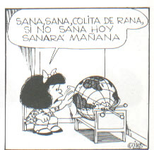 No puedo proyectar el símbolo de Batman en el cielo de mi ciudad pero sí que puedo , desde este blog tan imperfecto, conjurar a Mafalda.