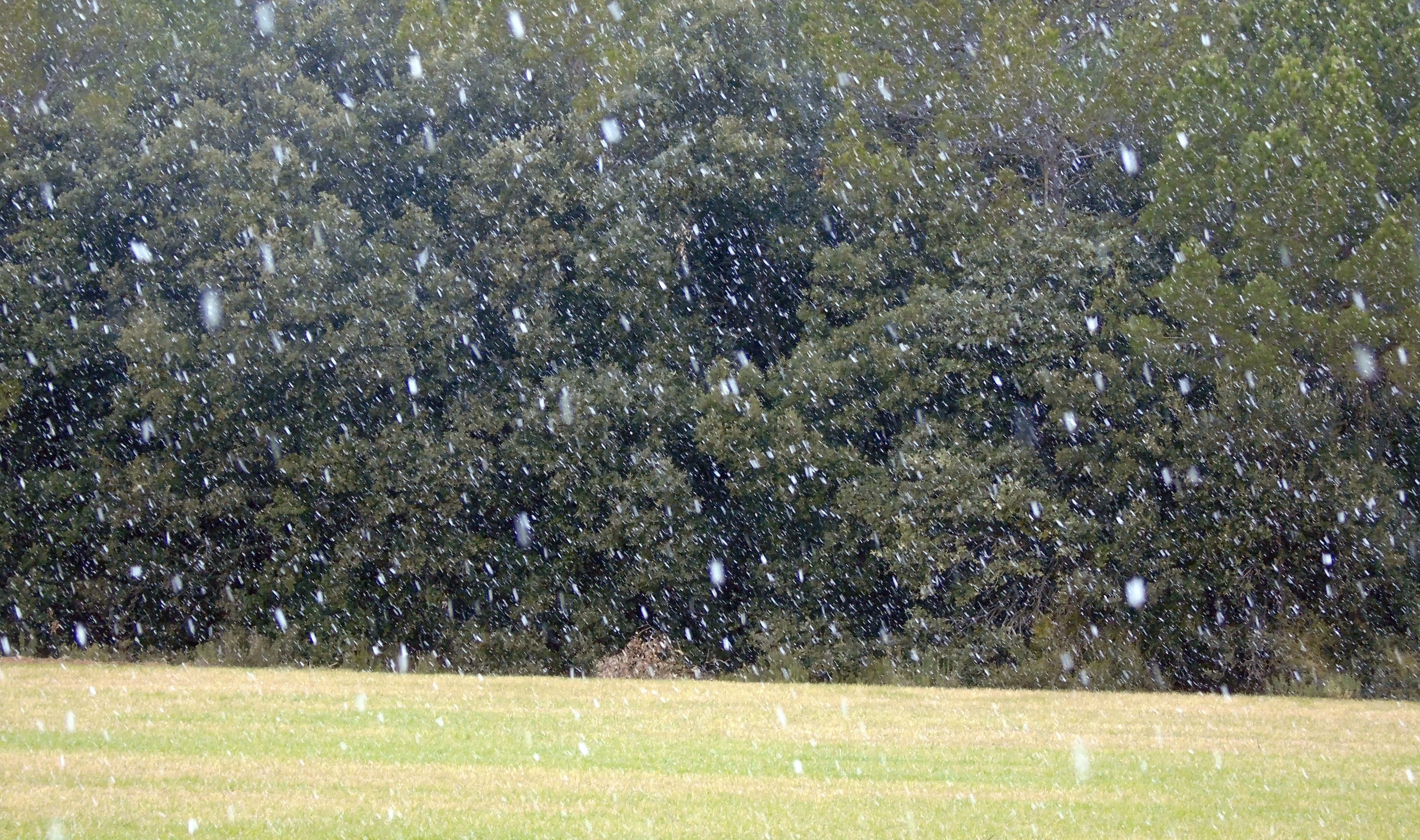 Primero, de reojo, he visto que la lluvia fina, en esa hora temprana de la mañana, caía como más suavemente. Me he acercado a la ventana . Pequeñas láminas de hielo, iban cubriendo la hierba…Se convertían en agua rápidamente… Después, las gotas eran blancas. Y no se oía el siseo de la lluvia.