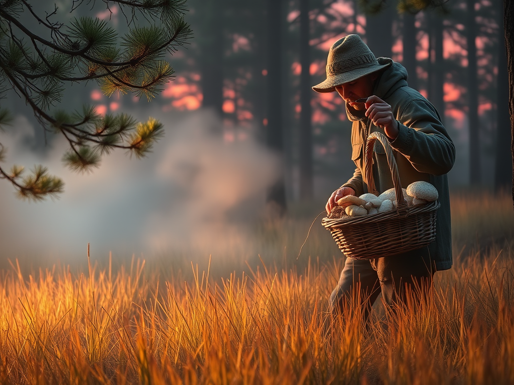Los micólogos habían predicho que se iban a reproducir en los bosques multitud de especies distintas. Las condiciones climatológicas de los últimos quince días del mes de octubre habían sido perfectas. Con mi equipo habitual —que, principalmente, se componía de un cestillo de mimbre y un útil que había heredado de mi abuelo, con forma de pequeña hoz del tamaño de un cuchillo— me adentré en el bosque mediterráneo que había seleccionado para mi salida.