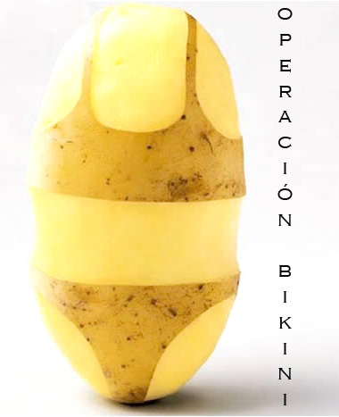 Aunque dicen que vuelve el frío y la nieve, ya no falta nada para que empecemos a sacarnos ropa y ropa y ropa… La Operación Bikini acecha tras la puerta… Y , aunque digamos “bikini”, el concepto ya es universal y afecta a mujeres, a hombres…incluso a las patatas.
