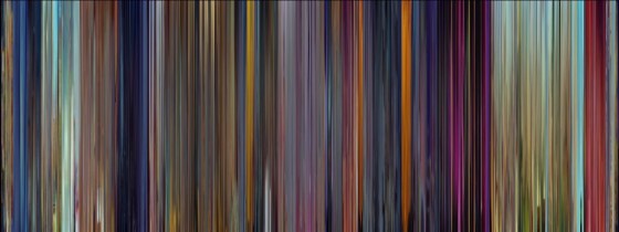 La unión y compresión de todos los fotogramas de una película, dan como resultado una especie de código de barras colorista ,comprimido en un espacio de 1000 píxeles. O sea, todos los fotogramas de una peli, bien pegaditos y juntitos…